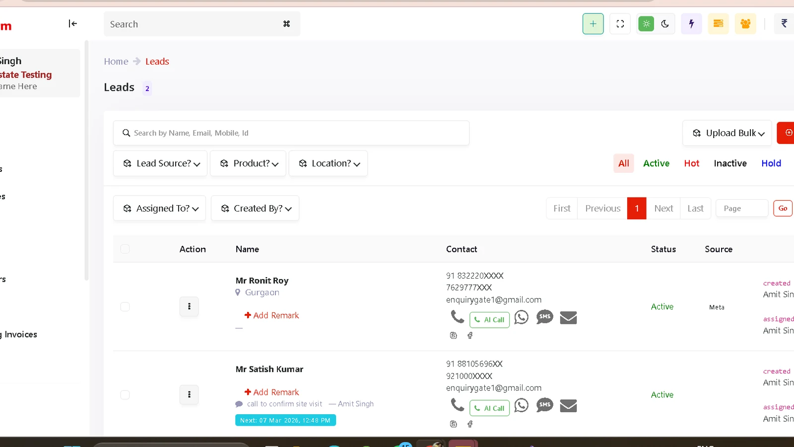 Real estate is a high-speed, high-follow-up business. Leads come from Meta ads, websites, portals, calls, references and brokers. Without a structured CRM, enquiries get lost in calls and WhatsApp, site visits are missed, and managers have no clarity on who followed up and when.